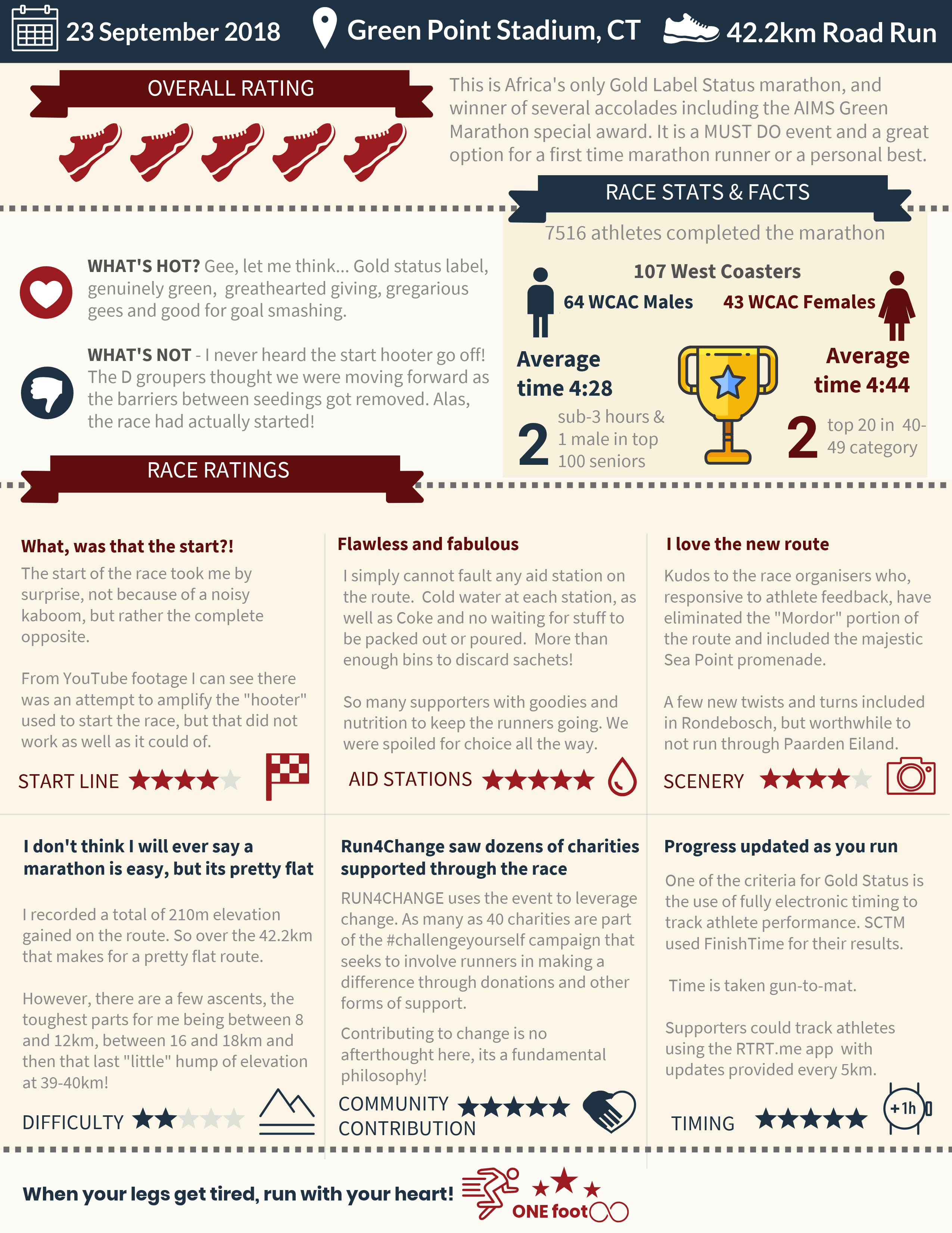 SCTM has a vision of becoming one of the World Marathon Majors. Now of course it is not in my hands to bestow this upon them, but I do believe that they are brewing a winning recipe. I for one will be back every year showing my support. To see why I think they have all the right elements in the blend, read my Sanlam CT Marathon race review in the infographic below.