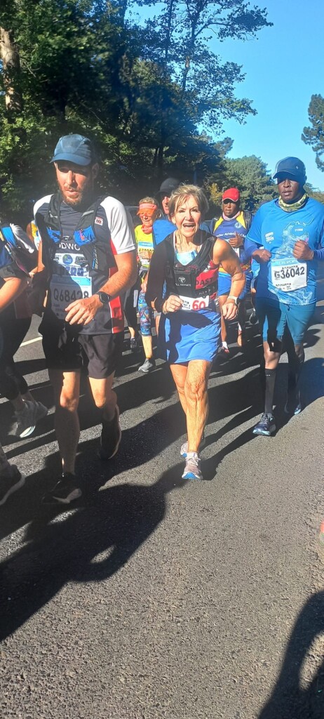 Now this is where I stop name dropping.  Simply because I just can’t remember who came in next.  Rather that way actually otherwise I’m bound to put my foot in it.  As I do.  I must say it was absolutely wonderful being present at the gazebo, seeing our folk coming in was a real treat.  Paula had made a congratulations banner for Alan and Issie – such a brilliant idea.  So thoughtful and creative.  As you must know by now, it was the 20th Two Oceans Ultra for both Alan and Issie.  Quite some feat hey!  Seeing that I haven’t even done one!
