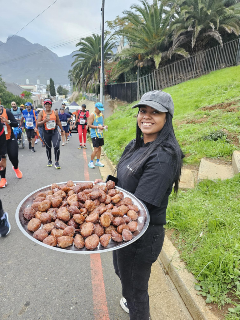 And now it was time to do exactly that. Tackle the HILL. For some – including me – the one and only option is to swallow one’s pride and take a good old-fashioned walk. A Sunday morning walk with the prize at the top being a home made straight out of the fryer – Koeksister/koesuster. Youngsters at the top of the hill abound with trays of this sweet treat were well stocked offering all and sundry a taste of their wares. It was here too that yet another water table was stationed thank goodness where one could quite deservedly quench one’s thirst. Oh yes indeed and it was very necessary.